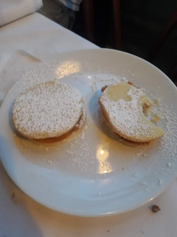식사를 마치고 디저트로 페루식 옥수수 전분 알파호레스를 주문합니다. 부드러운 쿠키 사이에 달콤한 둘세 데 레체가 듬뿍 들어간 알파호레스는, 입안 가득 퍼지는 달콤함으로 완벽한 마무리를 선사합니다. 아쉽게도 너무 맛있어서 사진 찍기 전에 다 먹어버렸다는 후기가 있을 정도입니다.