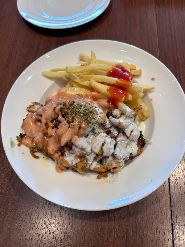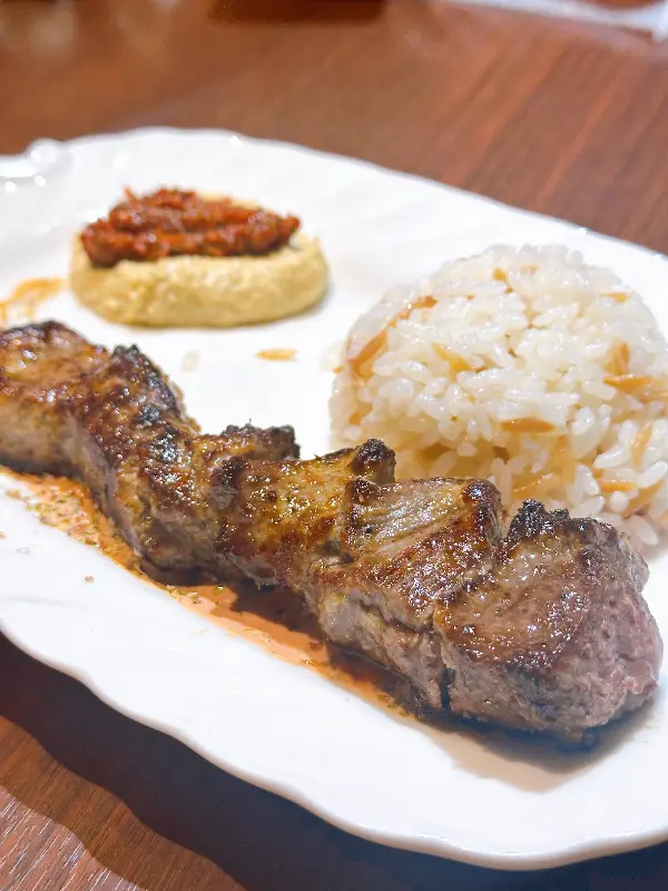 이어서 양고기 케밥이 나왔습니다. 뜨겁게 달궈진 철판 위에 양고기와 채소가 푸짐하게 담겨 있었습니다. 윤기가 흐르는 양고기는 보기만 해도 군침이 돌았습니다. 양고기 케밥을 한 입 먹으니, 부드러운 육질과 풍부한 육즙이 입안 가득 퍼져 나갔습니다. 숯불 향이 은은하게 느껴져 더욱 맛있었습니다. 곁들여 나온 신선한 채소와 함께 먹으니, 느끼함 없이 깔끔하게 즐길 수 있었습니다.