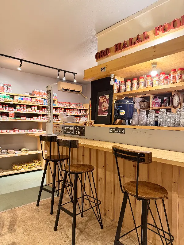 문을 열자, 따뜻한 미소로 나를 맞아주는 시라즈 사장님의 모습이 눈에 들어왔다. 첫인상부터 느껴지는 그의 친절함에 긴장이 풀리고 편안함이 느껴졌다. 가게 내부는 아늑하고 정갈했으며, 나무 테이블과 의자가 놓여 있어 편안하게 식사를 즐길 수 있는 분위기였다. 벽면 가득 채워진 각종 향신료와 식료품들은 마치 작은 인도 식료품점에 온 듯한 느낌을 주었다.