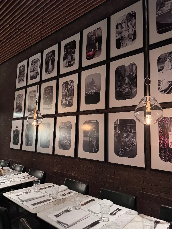 레스토랑 내부는 아늑하면서도 세련된 분위기를 자아냅니다. 벽면을 가득 채운 흑백 사진들은 마치 이탈리아의 한 골목길에 들어선 듯한 착각을 불러일으키고, 테이블 위에는 가지런히 놓인 식기들이 정갈함을 더합니다.