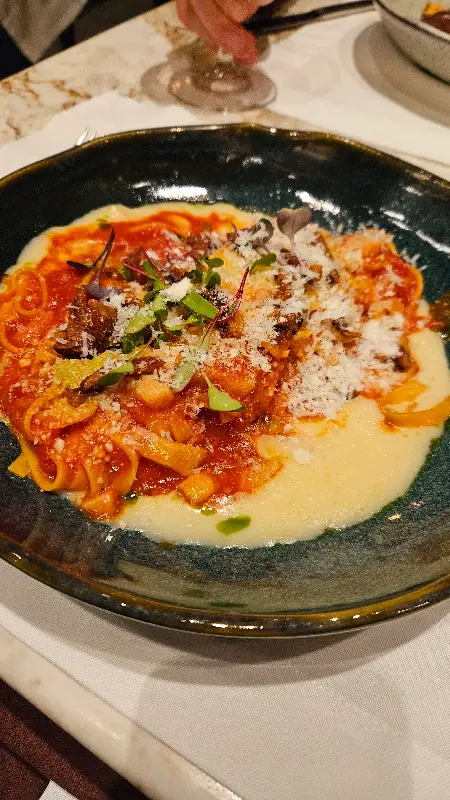 메인 요리로는 파스타 아마뜨리치아나와 라구 소스를 곁들인 파스타를 주문했습니다. 아마뜨리치아나는 짭짤한 베이컨과 토마토 소스의 조화가 인상적인 메뉴였습니다. 면발은 탱글탱글하고 소스는 깊은 풍미를 자랑했습니다. 하지만 라구 파스타는 간이 조금 싱거워서 아쉬움이 남았습니다.