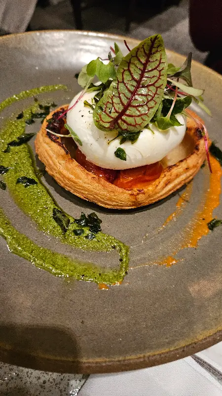 식전 빵과 함께 제공되는 신선한 부라타 치즈는 입맛을 돋우는 데 제격입니다. 쫄깃한 식감과 풍부한 풍미가 일품입니다.