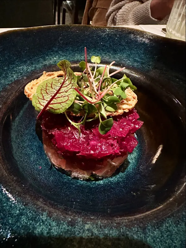 주문한 부라타 치즈가 먼저 나왔습니다. 겉은 쫄깃하고 속은 부드러운 부라타 치즈는 입안에서 사르르 녹아내리며 신선한 우유의 풍미를 선사합니다. 짭짤하면서도 고소한 맛이 와인과 환상적인 조화를 이루며 입맛을 돋우는 역할을 합니다.
