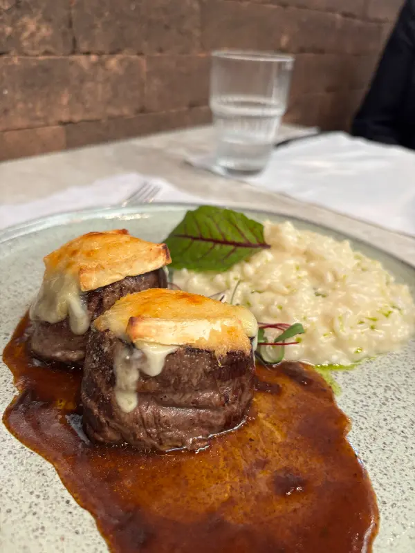 브리 치즈와 그라나 파다노 리조또를 곁들인 필레 미뇽 메달리온은 주코 오스테리아의 대표 메뉴 중 하나입니다. 부드러운 고기와 풍미 가득한 리조또의 환상적인 만남을 경험해 보세요.