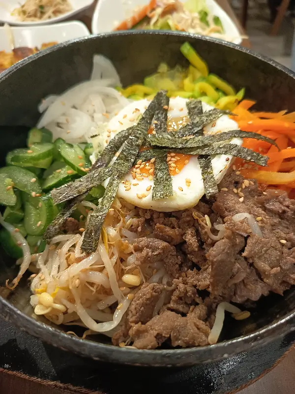 친구가 주문한 불고기 비빔밥도 잠시 맛보았습니다. 갖가지 신선한 채소와 고기가 어우러진 비빔밥은 보기만 해도 군침이 돌았습니다. 고슬고슬한 밥에 불고기와 채소를 얹어 고추장을 살짝 넣고 비비니, 입안 가득 퍼지는 풍성한 맛이 일품이었습니다. “과장 없이 제가 먹어본 비빔밥 중에 최고”라는 한 방문객의 후기가 과장이 아니었음을 실감했습니다.