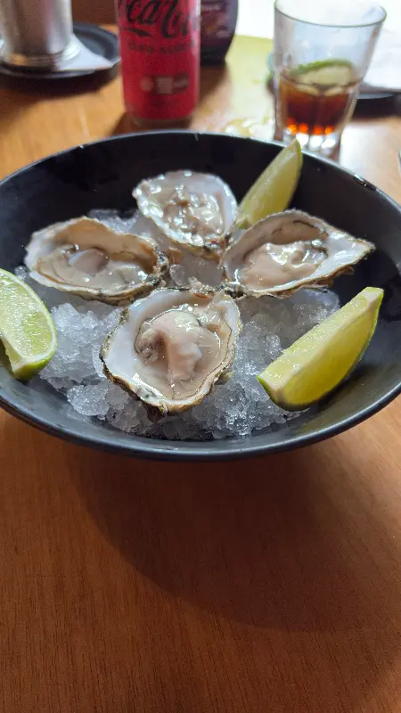 차가운 얼음 위에 놓인 굴에 라임 조각이 곁들여진 모습은 시각적으로도 훌륭합니다.