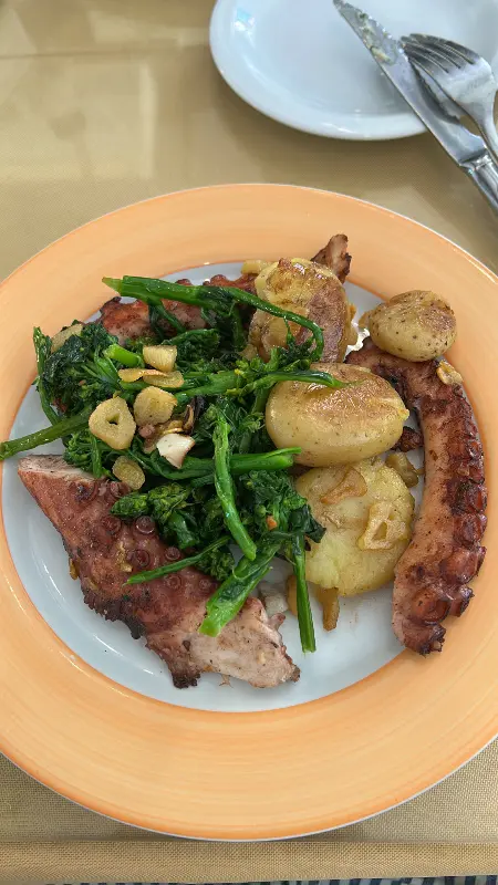 메인 요리로는 포르투갈 전통 음식인 바칼라우 아 브라스를 선택했다. 바칼라우는 염장 대구를 뜻하며, 브라스는 채 썬 감자와 계란을 함께 볶아 만든 포르투갈의 대표적인 요리다. 눈 앞에 놓인 바칼라우 아 브라스는 푸짐한 양에 압도되었다. 대구 살은 부드럽게 흩어졌고, 감자와 계란은 고소한 풍미를 더했다. 올리브 오일의 향긋함과 파슬리의 신선함이 어우러져 완벽한 맛의 조화를 이루었다.