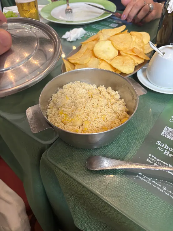 자리에 앉자마자 웨이터가 친절하게 메뉴를 안내해 주었다. 전채로는 바삭한 대구 튀김(볼리뉴 데 바칼라우)과 상큼한 카이피리냐를 주문했다. 튀김은 겉은 바삭하고 속은 촉촉했으며, 대구 특유의 풍미가 입안 가득 퍼져 나갔다. 카이피리냐는 라임의 상큼함과 캐샤사의 달콤함이 조화롭게 어우러져 입맛을 돋우는 데 제격이었다.