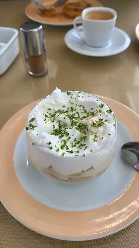 식사를 마치고 디저트로는 레몬 무스를 주문했다. 부드러운 무스 위에 상큼한 레몬 제스트가 듬뿍 뿌려져 있어 입안을 깔끔하게 마무리해 주었다. 달콤하면서도 상큼한 맛은 완벽한 디저트였다.