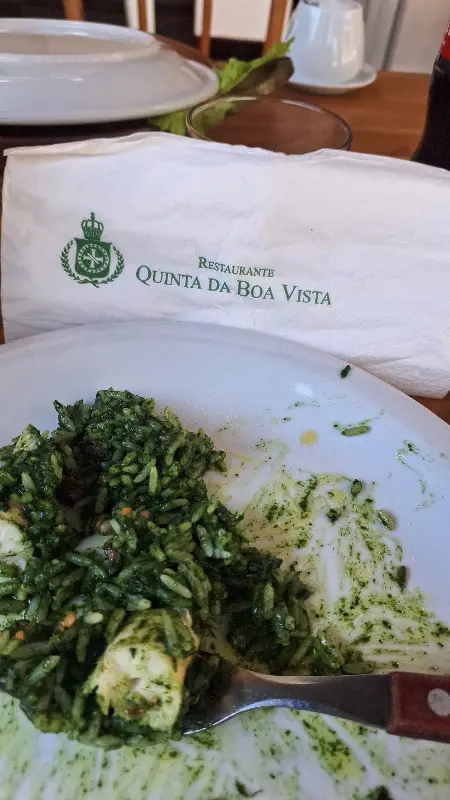 레스토랑 옆에는 오리가 한가롭게 헤엄치는 분수와 싱그러운 나무들이 어우러져 그림 같은 풍경을 자아냈다. 하지만 아쉽게도 파리가 조금 많아 완벽한 분위기를 느끼기에는 어려웠다. 그럼에도 불구하고, Quinta da Boa Vista의 아름다운 자연 속에서 식사를 즐길 수 있다는 점은 큰 매력이었다.