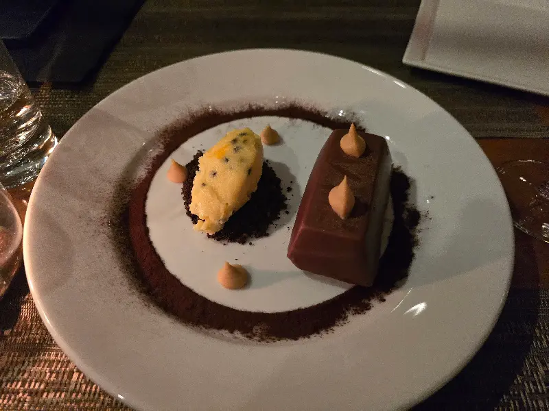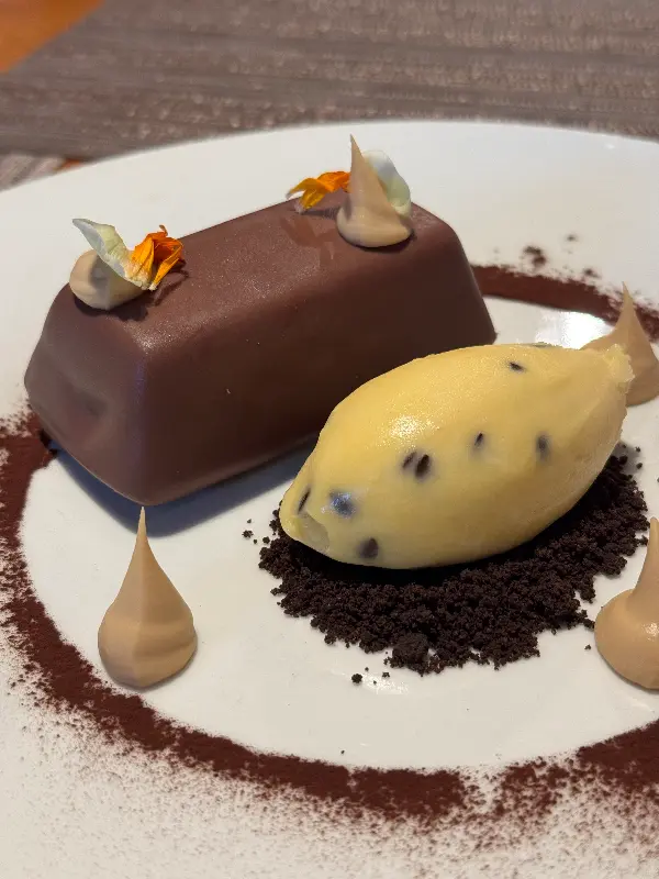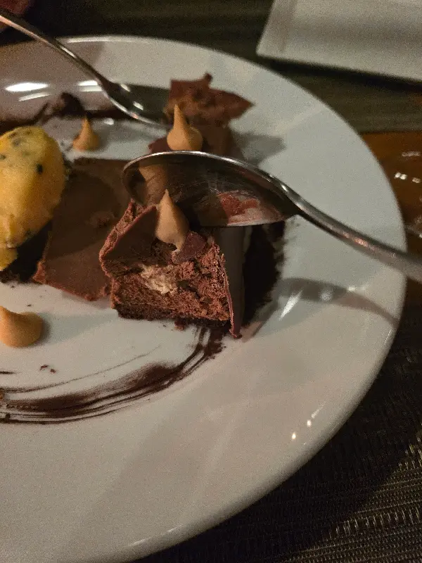 메인 요리의 아쉬움을 달래준 것은 바로 디저트였습니다. 눈으로 보기에도 아름다운 디저트는 입안 가득 퍼지는 달콤함으로 행복을 선사했습니다. 특히, 하트 모양의 디저트는 반짝이는 금빛 가루와 섬세한 꽃 장식으로 시선을 사로잡았습니다. 한 입 베어 무는 순간, 부드러운 질감과 달콤한 맛이 완벽하게 조화를 이루며 감탄을 자아냈습니다. 초콜릿 디저트 또한 깊고 진한 풍미로 입안을 가득 채웠습니다.