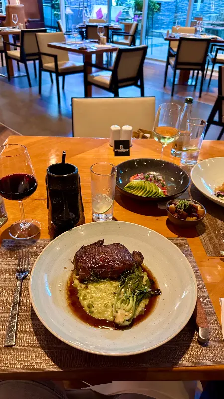 자리에 앉자, 친절한 서버가 따뜻한 미소로 맞이해주었습니다. 호텔 숙박비에 포함된 코스 요리였지만, 메뉴 하나하나에 담긴 정성과 섬세함은 기대 이상이었습니다. 브라질 식재료를 현대적으로 재해석한 요리들은 눈과 입을 즐겁게 했습니다. 특히, 플레이팅은 마치 예술 작품을 감상하는 듯한 기분을 선사했습니다. 신선한 재료 본연의 색감을 살린 아름다운 플레이팅은 맛에 대한 기대감을 한층 높였습니다.