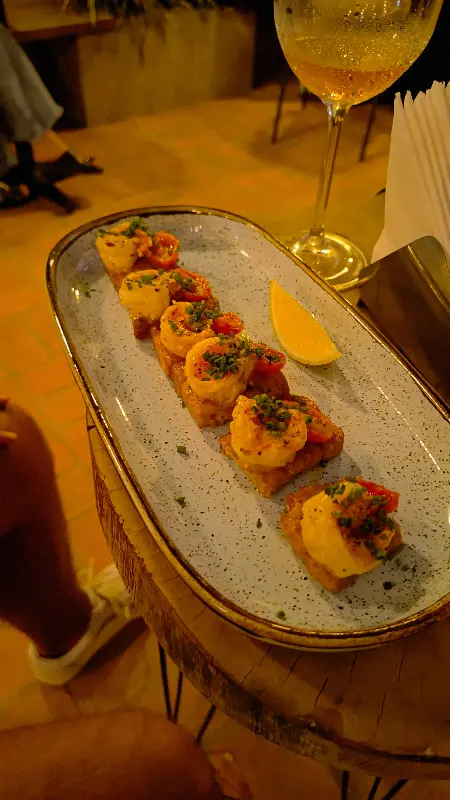전채 요리 또한 훌륭하다는 평가가 많다. 연어 카르파초는 신선한 연어와 상큼한 드레싱이 어우러져 입맛을 돋우고, 브리 치즈와 새우 요리는 풍미 가득한 맛으로 와인과의 환상적인 궁합을 자랑한다. 특히, 피스타치오 후무스는 독특한 풍미로 고객들의 입맛을 사로잡고 있다. 이미지 속 플레이팅처럼 정갈하게 담겨 나오는 음식들은 눈으로도 즐거움을 선사한다.