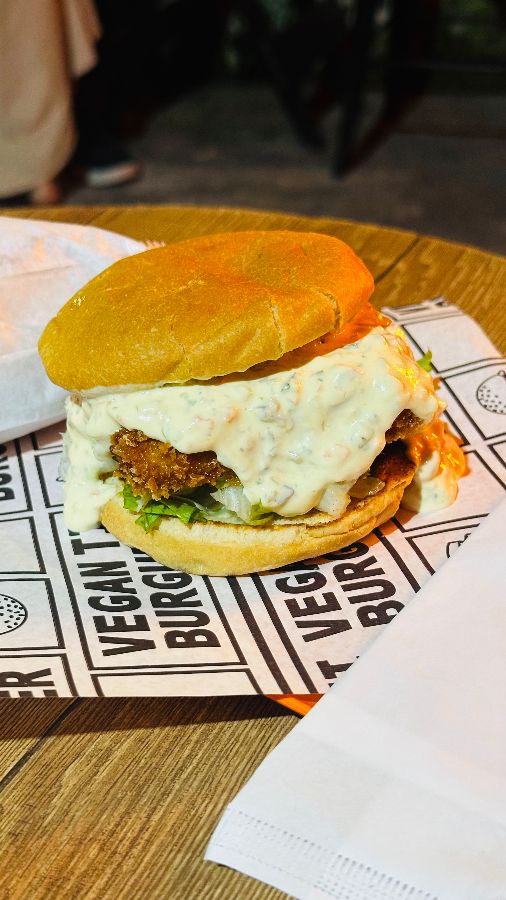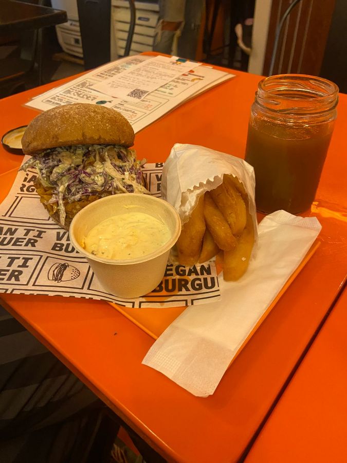 TiTiTi의 내부는 작지만 아늑하고 쾌적한 분위기를 자랑한다. 은은한 조명과 벽면에 그려진 개성 있는 그림들은 공간에 예술적인 감각을 더하며, 마치 작은 갤러리에 온 듯한 느낌을 준다. “VEGAN TI BURGUER”라는 네온사인 문구는 이곳이 비건 버거 전문점임을 강조하며, 힙하고 젊은 감각을 뽐낸다. 직원들의 친절함과 세심한 서비스는 이러한 분위기를 더욱 돋보이게 한다.