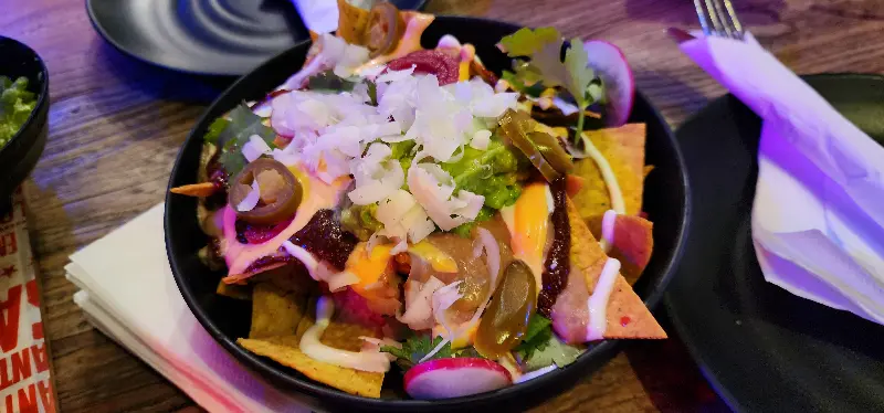 신선한 야채와 소스가 듬뿍 올려진 El Santo의 나초는 눈과 입을 즐겁게 하는 최고의 메뉴였습니다.