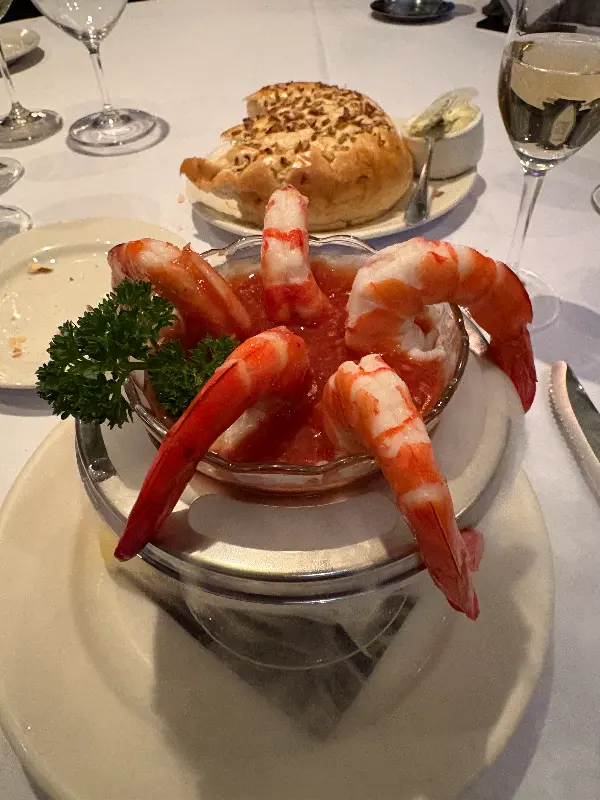 싱싱한 새우가 칵테일 소스에 담겨 아름다운 자태를 뽐내고 있다.