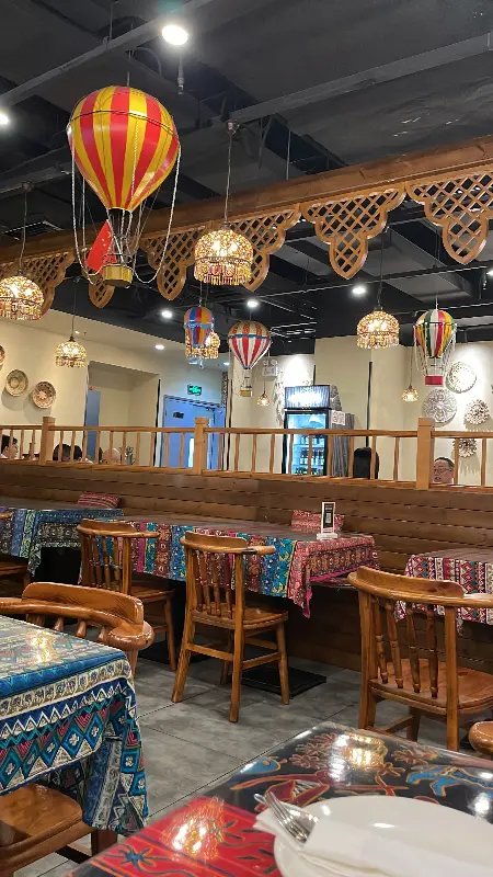문을 열고 들어서는 순간, 따뜻한 기운이 감돌았습니다. 은은한 조명 아래 펼쳐진 이국적인 풍경은 상하이 도심 속 작은 터키를 그대로 옮겨 놓은 듯했습니다. 테이블 위 화려한 문양의 식탁보, 천장에 매달린 알록달록한 열기구 모양의 조명(Image 5)은 여행자의 마음을 설레게 했습니다. 나무 소재를 사용한 인테리어는 편안함과 아늑함을 더했습니다. 활기 넘치는 도시에서 벗어나 잠시나마 여유를 즐길 수 있는 공간이라는 인상을 받았습니다.