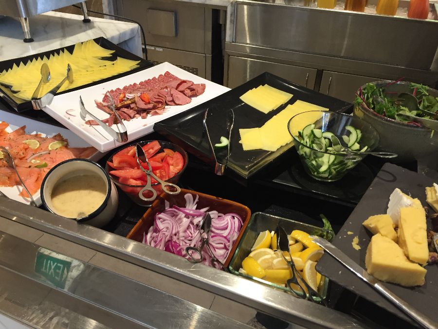 따뜻한 음식 코너를 지나면, 눈을 즐겁게 하는 신선한 콜드 스테이션이 펼쳐집니다. 얇게 썰린 훈제 연어, 다양한 종류의 치즈, 신선한 야채와 드레싱, 그리고 올리브와 절인 양파까지, 개인의 취향에 맞춰 자유롭게 샐러드를 구성할 수 있습니다. 특히 훈제 연어의 부드러운 분홍빛은 신선함을 그대로 보여주며, 아침 식탁에 고급스러운 분위기를 더합니다. 이곳은 단순히 음식을 제공하는 것을 넘어, 고객이 직접 요리의 일부를 완성하는 즐거움을 선사합니다. 신선한 재료들은 그 자체로 예술 작품처럼 배열되어 있어, 어떤 조합을 선택하든 완벽한 맛을 기대하게 합니다.