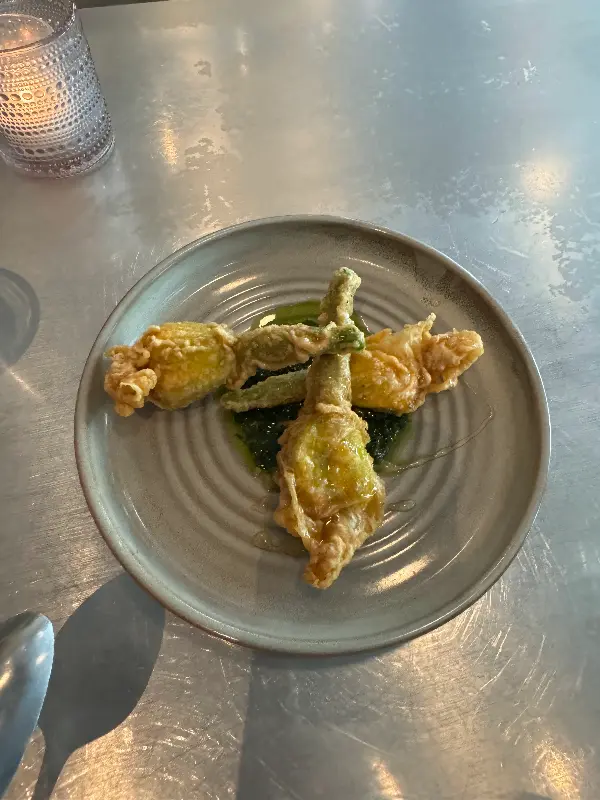 겉은 바삭하고 속은 촉촉한 호박꽃 튀김은 쿠치나 우르바나에서 꼭 맛봐야 할 메뉴 중 하나입니다.