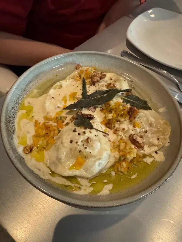 버터넛 스쿼시 라비올리는 부드러운 식감과 풍부한 소스의 조화가 일품이며, 폴렌타와 브로콜리를 곁들인 구운 닭 요리는 완벽한 간과 촉촉한 식감으로 칭찬을 받았습니다. 디저트로는 피스타치오 토핑을 얹은 리몬첼로 타르트가 상큼하고 시원한 맛으로 입가심을 해주어 만족스러웠습니다.