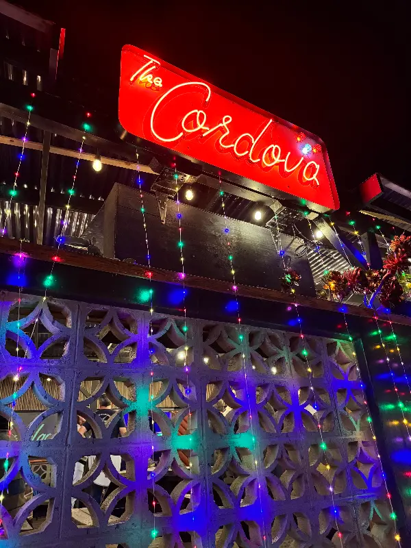 The Cordova Bar의 밤을 밝히는 네온사인, 잊지 못할 추억을 예감하게 한다.