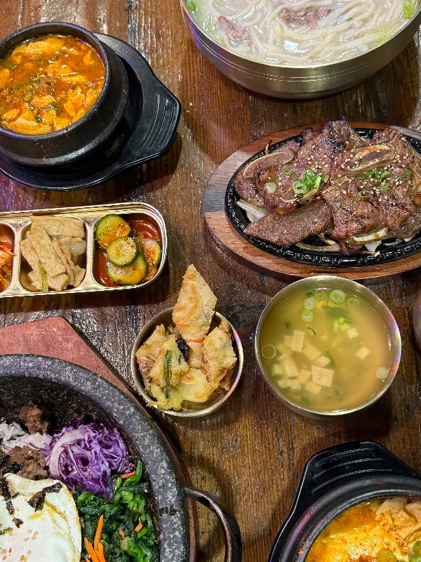 “초당”에서는 핫스톤 비프 외에도 다양한 메뉴를 즐길 수 있습니다. 그중에서도 돌솥비빔밥은, 뜨거운 돌솥 안에서 지글거리는 소리와 함께 다채로운 색감을 자랑하며 식욕을 자극합니다.