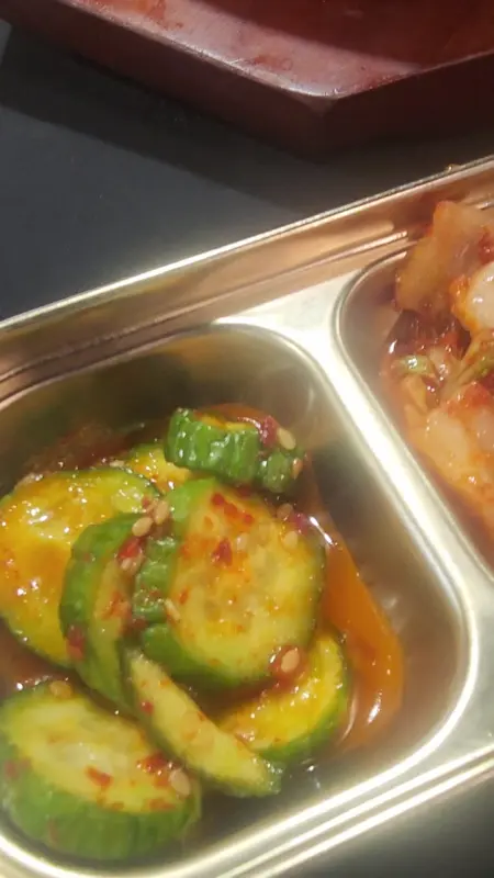 핫스톤 비프와 함께 제공되는 밑반찬은 김치, 어묵, 오이 등 다채로운 구성으로 이루어져 있습니다. 특히, 싱싱한 오이의 아삭함과 매콤달콤한 양념이 어우러진 오이무침은 핫스톤 비프의 느끼함을 잡아주는 최고의 조합이었습니다.