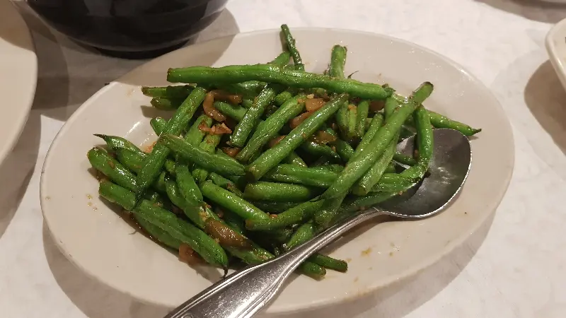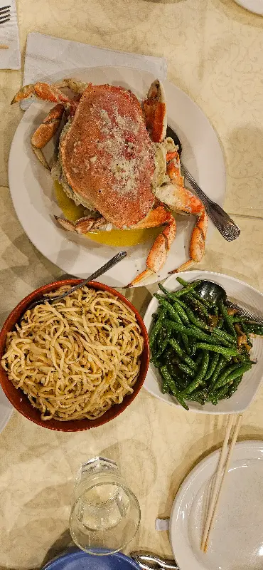 던저니스 크랩, 갈릭 누들, 그린빈의 환상적인 조합! 이 맛을 잊을 수 없어요.