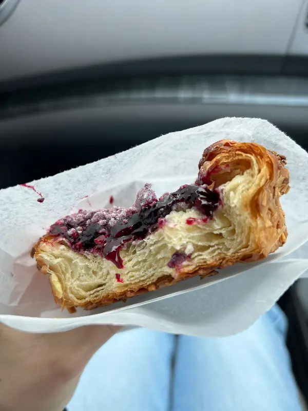 한 입 베어 무는 순간, 바삭한 크루아상의 식감과 상큼한 블루베리의 조화가 입안 가득 퍼져 나갔다. 크러스트 속 아몬드의 고소함까지 더해져 완벽한 맛을 선사했다. 남편이 선택한 플레인 크루아상 역시 훌륭했다. 겉은 바삭하고 속은 촉촉한 완벽한 크루아상의 정석이었다.