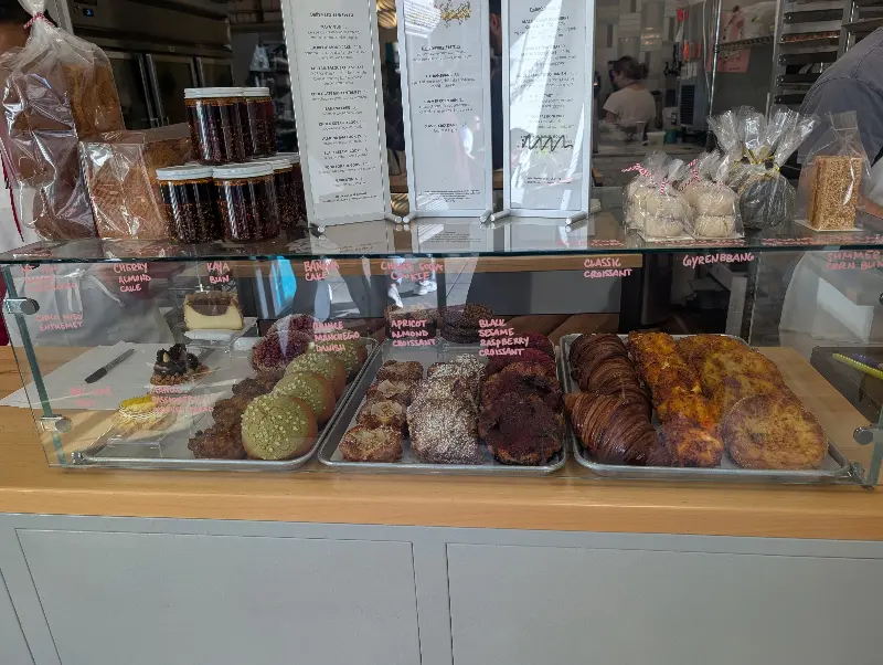 브레드벨리는 페이스트리 맛집으로도 유명하다. 쇼케이스 안에는 먹음직스러운 비주얼의 페이스트리들이 가득 진열되어 있었다. 그중에서도 나의 눈길을 사로잡은 것은 바로 블루베리 타르트였다. 겹겹이 쌓인 크루아상 생지 위에 달콤한 블루베리가 듬뿍 올려져 있는 모습은 그야말로 예술이었다.