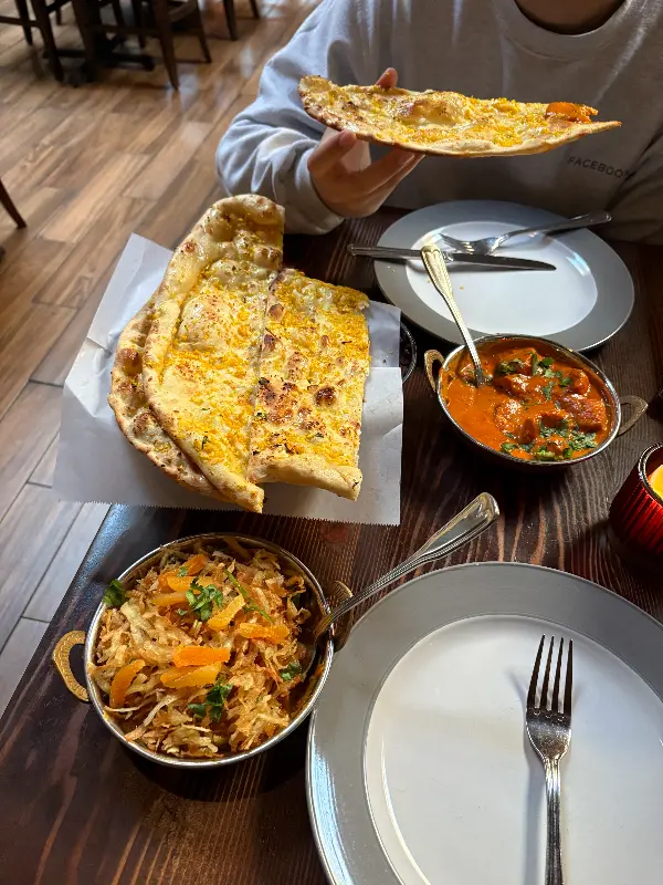 아프나 출라의 난은 베이 지역에서 최고라는 평가를 받을 정도로 훌륭합니다. 겉은 바삭하고 속은 쫄깃한 난은 어떤 메뉴와도 잘 어울립니다. 특히, 갈릭 난은 그 풍미가 더욱 깊고 진하여 많은 사람들의 사랑을 받고 있습니다. 갓 구워져 나오는 따뜻한 난은 그 자체로도 훌륭한 요리입니다.