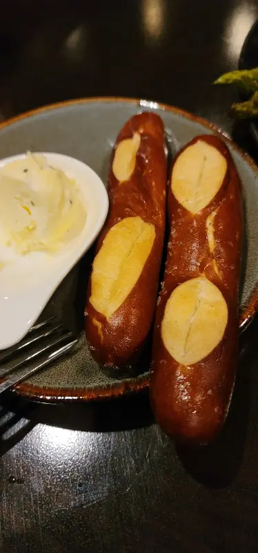 가장 먼저 등장한 것은 식전 빵이었습니다. 바삭하게 구워진 프레첼과 부드러운 바게트가 따뜻하게 제공되었습니다. 특히 인상적이었던 것은 함께 제공된 버터였습니다. 풍부한 풍미와 부드러운 질감이 빵의 맛을 한층 끌어올렸습니다. 빵 한 조각, 버터 한 조각에도 JW 스테이크하우스의 섬세함이 느껴졌습니다.