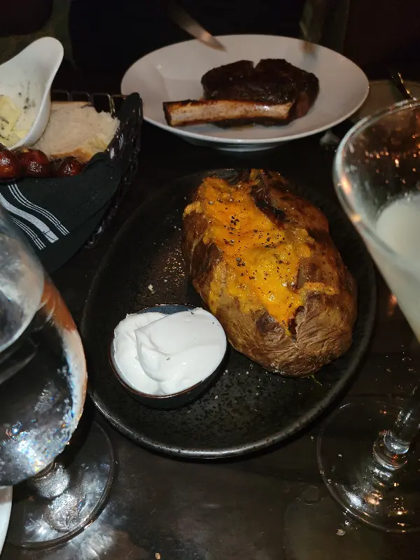 JW 스테이크하우스는 스테이크하우스치고 가격이 다소 높은 편이지만, 음식의 양을 고려하면 가격 대비 훌륭한 가치를 제공합니다. 특히 사이드 메뉴로 주문한 구운 감자는 제가 본 감자 중 가장 컸습니다. 넉넉한 양 덕분에 배부르게 식사를 즐길 수 있었습니다.
