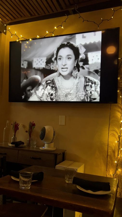 레스토랑 내부는 아늑하면서도 개성 넘치는 분위기로 가득합니다. 특히 뒷방 테이블은 마치 시간을 거슬러 올라간 듯한 특별한 경험을 선사합니다. 벽면에 걸린 TV에서는 옛날 흑백 라틴 영화가 흘러나오고, 은은한 조명과 함께 따뜻한 기운이 감돕니다. 마치 영화 속 주인공이 된 듯한 기분으로 식사를 즐길 수 있다는 점이 Juventino만의 매력입니다.