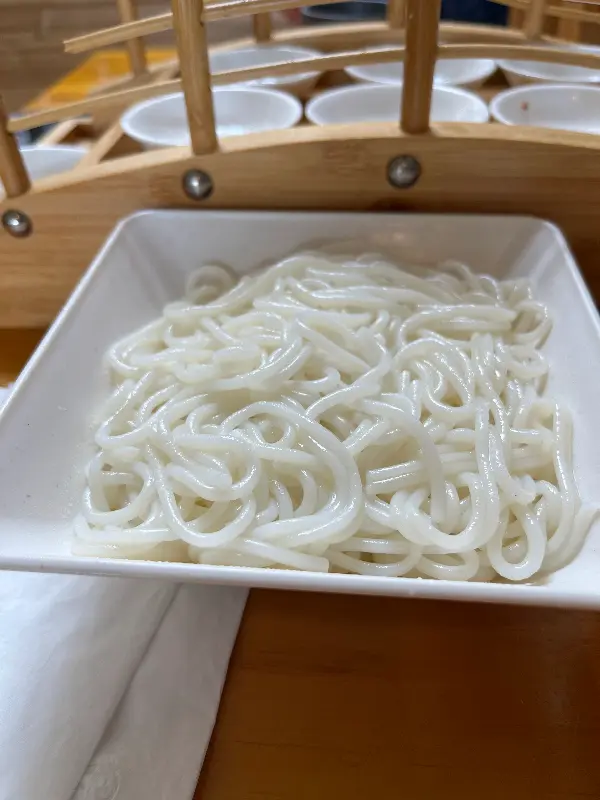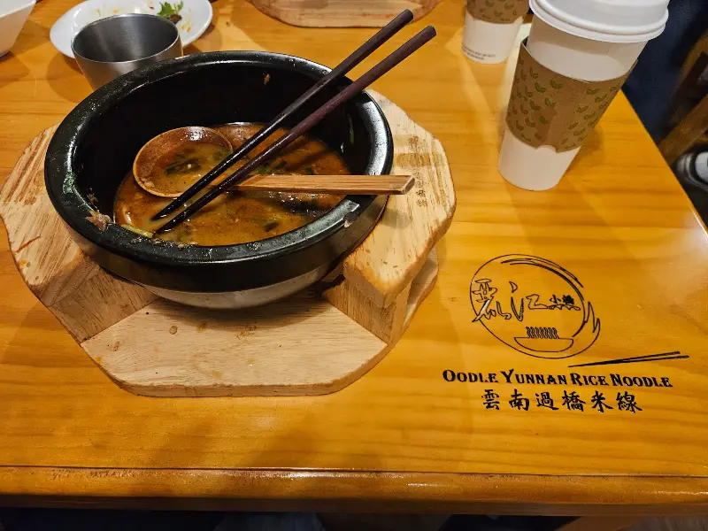 Oodle에서 맛본 또 다른 메뉴는 윈난 스파이시 리틀팟이었다. 매콤한 국물에 쌀국수와 다양한 채소가 어우러진 요리인데, 얼큰하면서도 깊은 풍미가 정말 인상적이었다. 매운 음식을 좋아하는 사람이라면 꼭 한번 맛봐야 할 메뉴다.