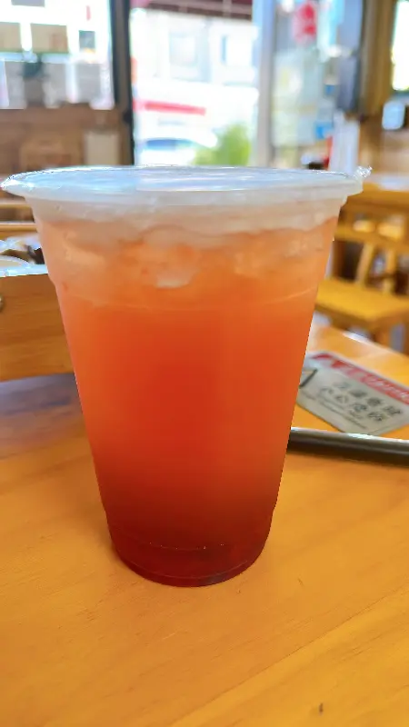 음료로는 허니 피치 그린티를 주문했는데, 달콤한 복숭아 향과 은은한 녹차 향이 어우러져 정말 상큼했다. 특히, 젤리가 들어가 있어 씹는 재미까지 더해졌다. 다만, 단맛을 싫어하는 사람들에게는 조금 달게 느껴질 수도 있을 것 같다.