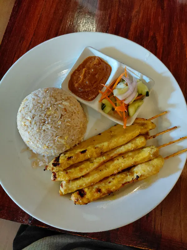 부드러운 닭고기와 고소한 땅콩 소스의 만남, 치킨 사테로 식욕을 돋우세요.