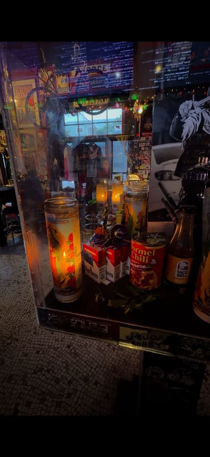 벽면을 장식하는 다양한 포스터와 소품들, 그리고 살짝 어두운 듯한 조명 아래 비추는 진열장 안의 모습은 이곳 Zeitgeist가 간직한 비정형적인 아름다움을 보여줍니다. 낡은 듯 보이지만 오히려 더 깊이 있는 분위기를 자아내는 촛불과 오래된 음료 캔, 그리고 담배 갑 등의 소품들은 샌프란시스코의 다이브 바 특유의 빈티지한 감성을 그대로 재현하고 있었습니다.