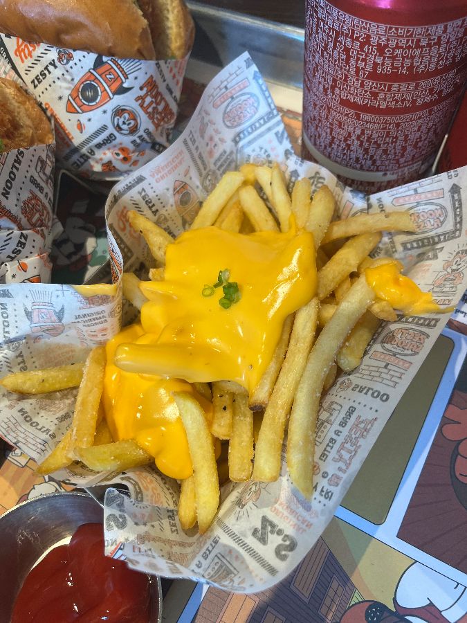 짭짤하면서도 달콤한 갈릭 소스와 고소한 치즈의 조합은 정말 환상적이었다. 겉은 바삭하고 속은 촉촉한 감자튀김은 쉴 새 없이 입으로 들어갔다. 와사비 쉬림프 버거와 갈릭 치즈 감자튀김의 조합은 정말 최고의 선택이었다.
