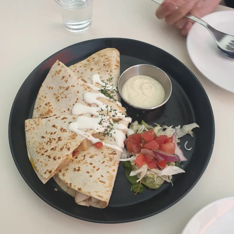 매장에서 먹는 것도 좋지만, 가끔은 집에서 편안하게 즐기고 싶을 때가 있잖아요? 마침 신랑과 함께 먹기 위해 타코, 퀘사디아, 샐러드를 포장 주문했는데, 꼼꼼한 포장 덕분에 흐트러짐 없이 매장에서 먹던 그 맛 그대로 즐길 수 있었습니다. 소스도 넉넉하게 챙겨주셔서 부족함 없이 맛있게 먹었네요. 양도 푸짐해서 둘이 먹고도 남을 정도였어요. 남은 음식은 다음 날 아침 브런치로 즐겼는데, 살짝 데워 먹으니 또 다른 매력이 있었습니다.