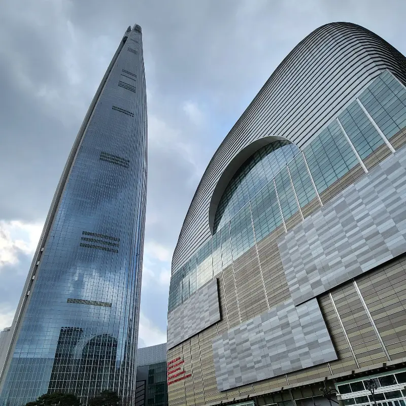 롯데월드의 랜드마크, 롯데 타워는 언제나 방문객들을 압도하는 웅장함을 자랑합니다.