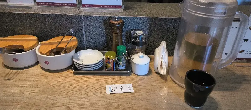 테이블 위에는 다양한 조미료와 함께, 라멘을 더욱 맛있게 즐기는 방법이 적힌 안내문이 놓여 있었다. 이런 세심한 배려 덕분에, 처음 방문하는 사람도 당황하지 않고 자신만의 스타일로 라멘을 즐길 수 있을 것 같았다. 은은하게 풍기는 라멘 육수의 향이 코를 간지럽히며, 기대감을 더욱 고조시켰다.