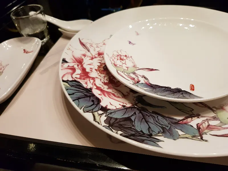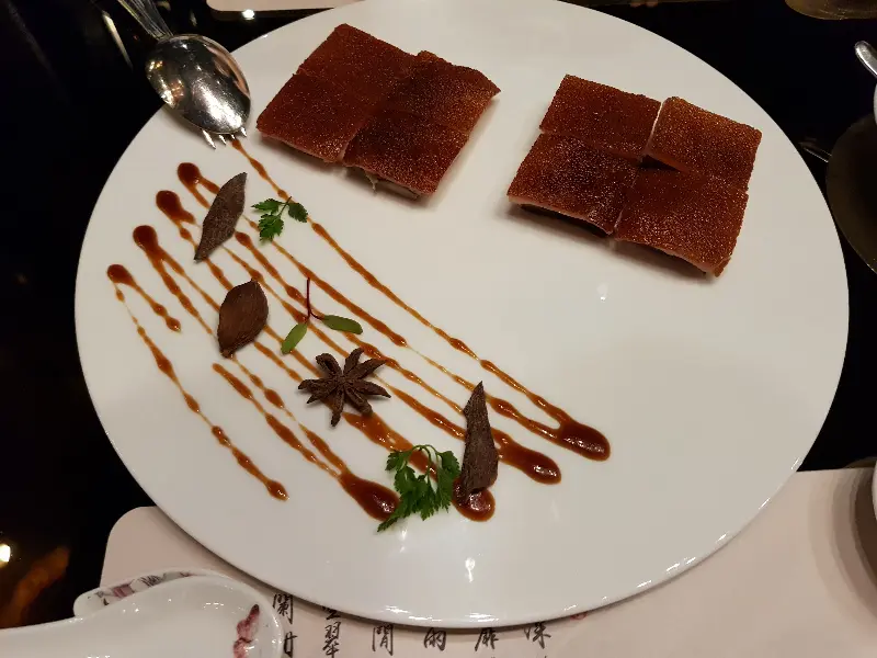 섬세한 플레이팅이 돋보이는 베이징덕 껍질 요리.