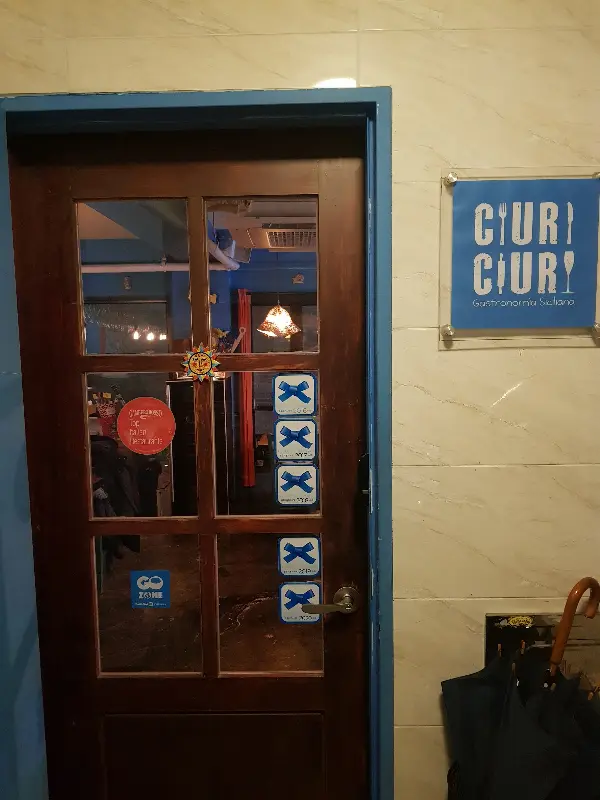 Ciuri Ciuri의 따뜻한 느낌을 주는 입구. 푸른색 간판이 인상적이다.