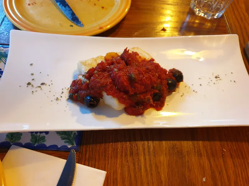 메뉴에 넙치구이가 있길래 주문해 보았다. 겉은 바삭하고 속은 촉촉한 넙치구이는 신선한 토마토 소스와 환상적인 궁합을 자랑했다. 넙치의 담백한 맛과 토마토 소스의 상큼함이 어우러져 입맛을 돋우었다. 라자냐의 토마토 소스와는 또 다른 산뜻함이 느껴졌다. 다만, 넙치구이의 양은 조금 적게 느껴졌다.