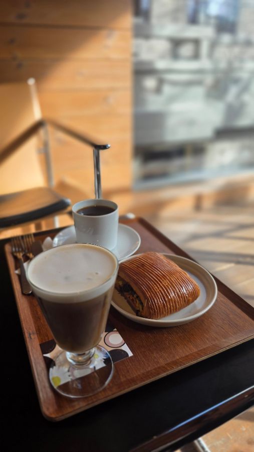 주문 데스크로 향하는 길, 진열장을 가득 채운 다양하고 먹음직스러운 베이커리들이 눈길을 사로잡았습니다. 갓 구워낸 빵들의 고소한 향기가 카페 전체를 가득 메우고 있어, 커피와 함께 어떤 빵을 고를지 행복한 고민에 빠지게 했습니다. 주말에는 긴 대기줄과 커피를 받기까지 30분 이상 걸린다는 악명 높은 소문이 있었지만, 평일이라 그 정도는 아니었습니다. 하지만 여전히 인기가 많은 곳임을 실감할 수 있는 적당한 활기가 감돌았습니다.