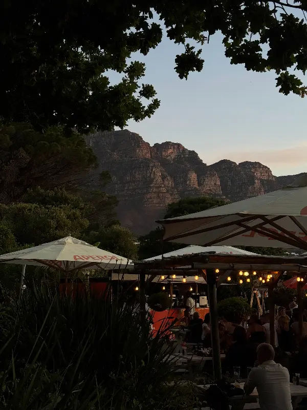 석양이 지는 시간, The Lawns는 더욱 아름다운 모습으로 변신합니다. 붉게 물든 하늘과 테이블 마운틴의 실루엣은 잊지 못할 감동을 선사합니다. 이곳에서 칵테일 한 잔을 기울이며 석양을 감상하는 것은 정말 낭만적인 경험입니다. 분위기도 환상적이었고 경치도 훌륭했습니다. 실력 있는 웨이터 덕분에 저희는 제대로 된 서비스를 받고, 아무것도 놓치지 않도록 신경 써 주셨습니다.