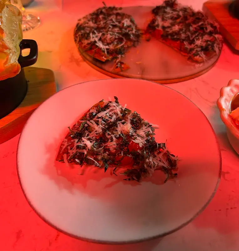 엘레망에서 꼭 맛봐야 할 메뉴 중 하나는 바로 ‘냄새나는 두부 파르팔레 파스타’입니다. 독특한 이름과는 달리, 냄새나는 두부의 풍미가 파스타와 절묘하게 어우러져 잊을 수 없는 맛을 선사합니다. 파르팔레 면의 쫄깃한 식감과 두부의 부드러움이 입안에서 조화롭게 어우러지며, 짭짤하면서도 고소한 맛이 계속해서 입맛을 당깁니다. 언니도 처음에는 냄새나는 두부라는 이름에 거부감을 느꼈지만, 한 입 맛보더니 “정말 맛있다!”라며 감탄했습니다.