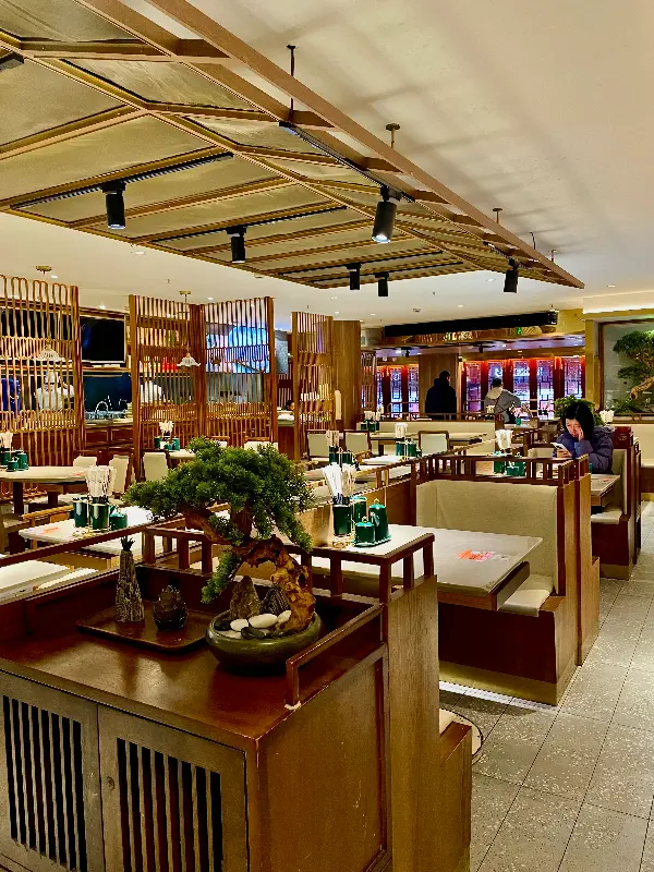 송허러우에 들어서자, 북적이는 인파 속에서 벗어난 듯 조용하고 아늑한 분위기가 나를 맞이했다. 인테리어는 현대적이면서도 전통적인 느낌이 조화롭게 어우러져 있었고, 은은한 조명은 편안함을 더했다. 마치 시간이 멈춘 듯한 고요함 속에서, 나는 곧 펼쳐질 미식 경험에 대한 기대감을 키워나갔다.