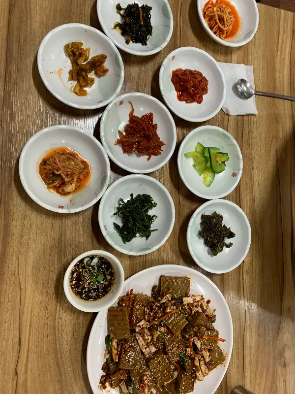 주문을 마치자, 곧바로 정갈한 반찬들이 테이블 위를 가득 채운다. 보기만 해도 건강해지는 듯한 다양한 나물들과 김치, 젓갈 등이 먹음직스럽게 담겨 나온다. 특히 눈에 띄는 것은 새송이버섯 양념구이. 더덕구이와 같은 양념으로 조리되었다고 하는데, 즉석에서 구워져 나와 따뜻하고 촉촉한 식감이 일품이다. 짭쪼름하면서도 달콤한 양념이 버섯의 풍미를 한층 끌어올린다.